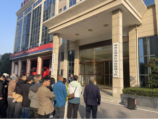 荆州区消防救援大队郢城站宣讲人员带领大家参观站内设备,介绍了消防车及消防设备,令大家大开眼界,组织进行消防安全知识培训,宣讲人员围绕如何检查消除火灾隐患、如何扑救初期火灾、如何组织引导人员疏散逃生等内容进行了细致讲解。随后,宣传人员带领全体消防安全员进行灭火器及消防水带的使用演练,学习扑救初期火灾的方法。